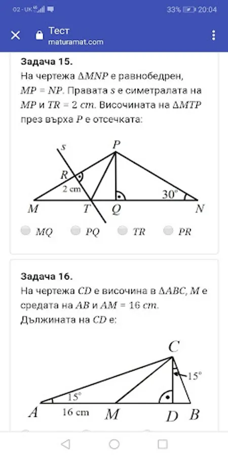 Matura Mat - HBO 7 is an application that aims to help prepare students for the national external assessment in mathematics in an easy and mobile way. Here everyone will find a large number of tests, which are structurally identical to the tests from exams offered in previous years. The user has the opportunity to solve tests anonymously or create a profile that will allow him to monitor statistics on his level of development and compare the results achieved with other registered users.