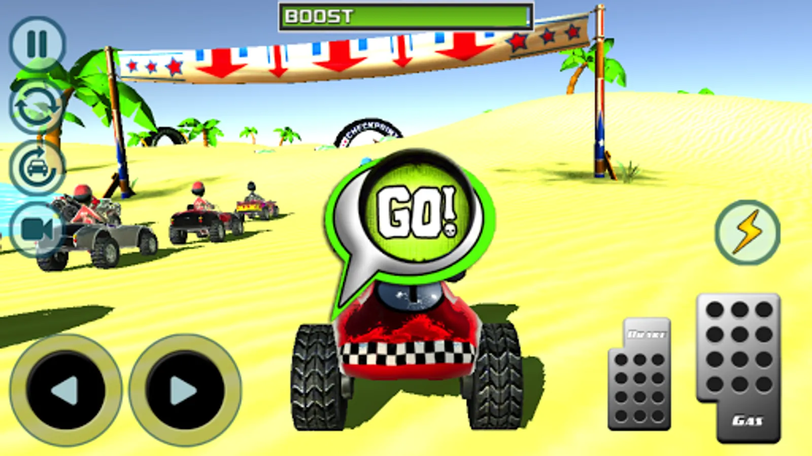 Each time you win a race you gain money where you could buy new stronger cars and unlock more tracks. Has four levels of difficulity from very easy to hard. You have three types of controls two with buttons and one where you could use your phone as a wheel.