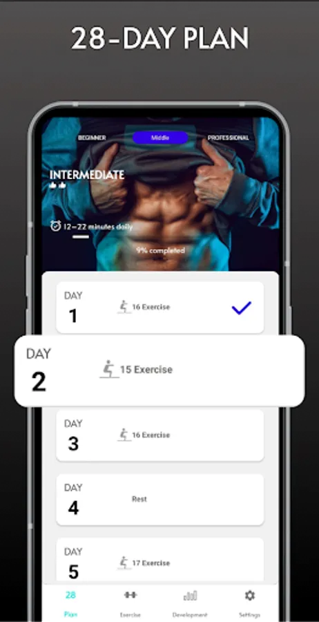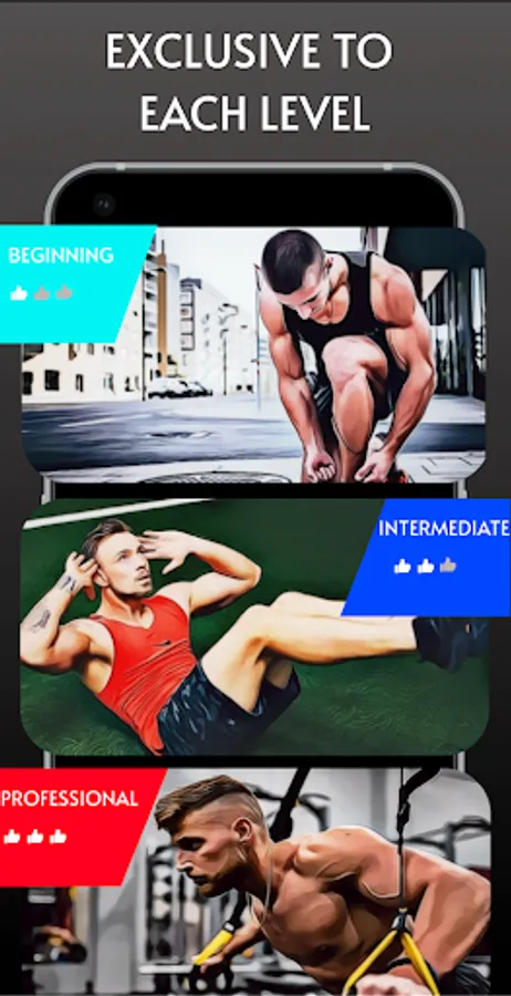 3 workout plan levels, Rock Hard Abs and Baklava Slice Abs will help you burn belly fat and build abs step by step. The app includes exercises for your abs, chest, legs, arms as well as exercises that work your whole body. These abdominal exercises are at home or wherever you want while fitness.