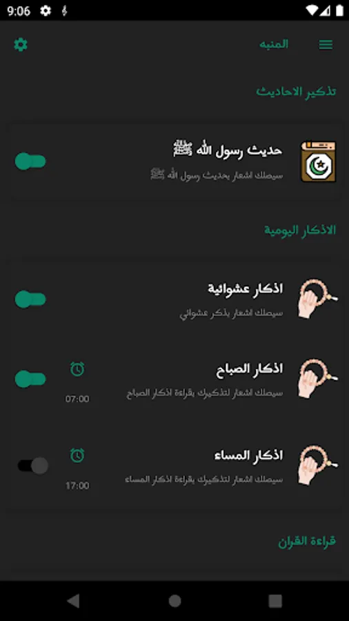 3- The possibility of listening to the Holy Qur’an for many famous reciters