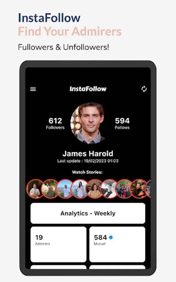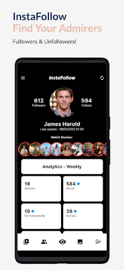 InstaFollow is an Instagram analyse application which you can find out your Instagram Followers, unfollowers, fans and so on. You can also watch your friends' stories anonymously.