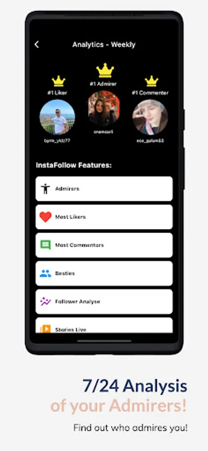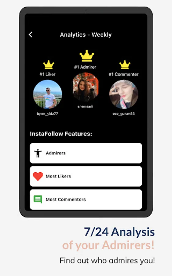 InstaFollow is the most secured app for Instagram analyses. You can freely use the app to get these informations.