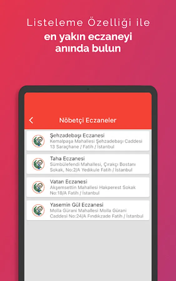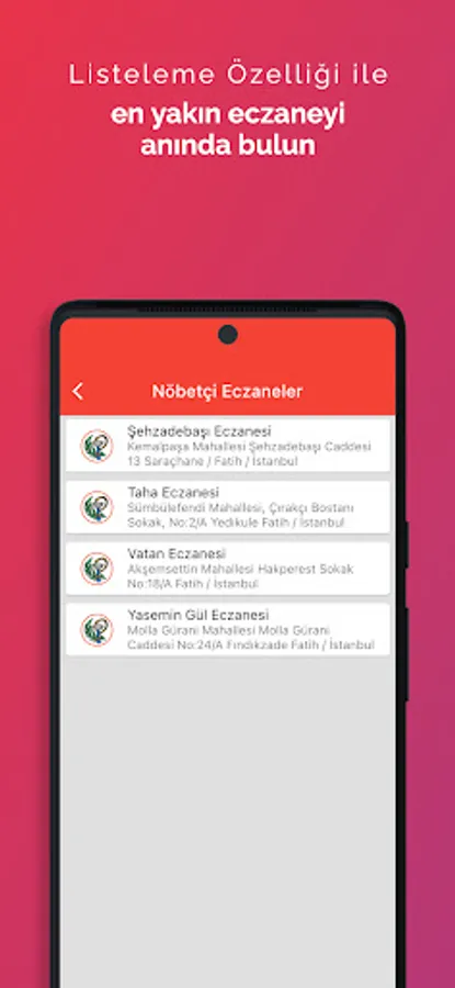 Pharmacies app gives information on pharmacies on duty 81 provinces in Turkey. It provides you convenience with its design on the map and its listing methods.