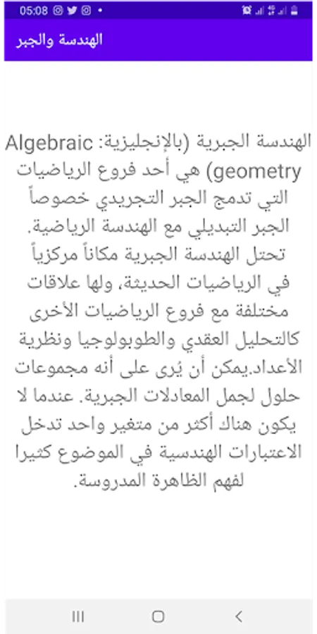 تطبيق يمكنك من معرفة الهندسة والجبر،كما يمكنك من معرفة الفرق بين الجبر والهندسة في الرياضيات.