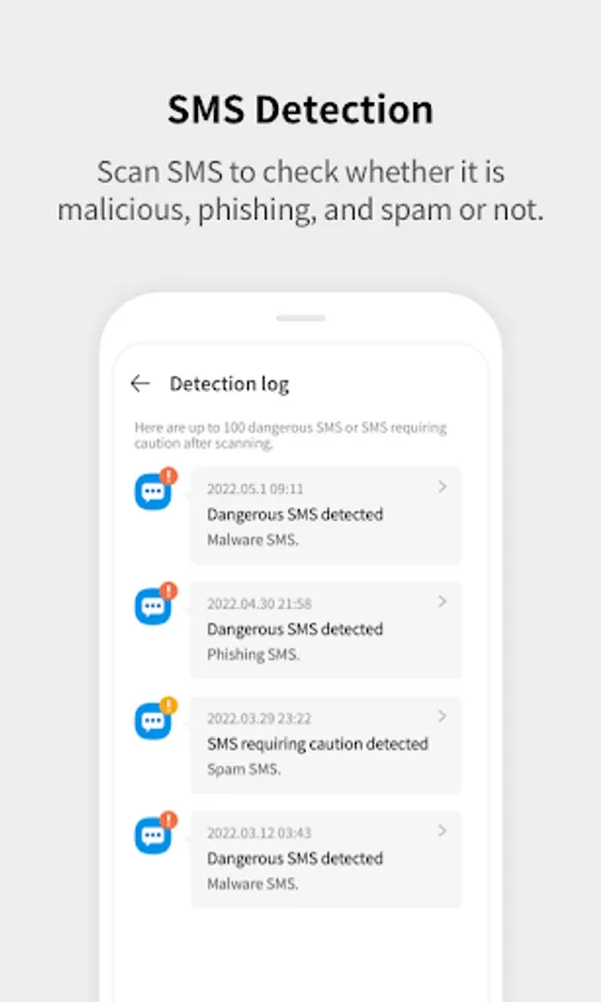 • Scan SMS to check whether it is malicious, phishing, and spam or not.