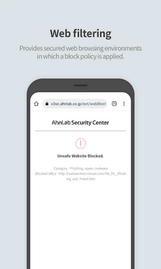 - Web filtering: AhnLab Office Security Center applies a block policy to provide secured web browsing environment.
