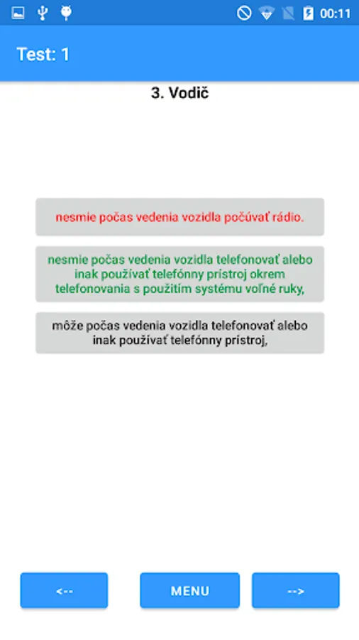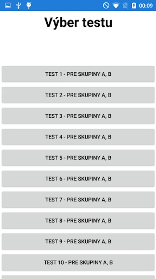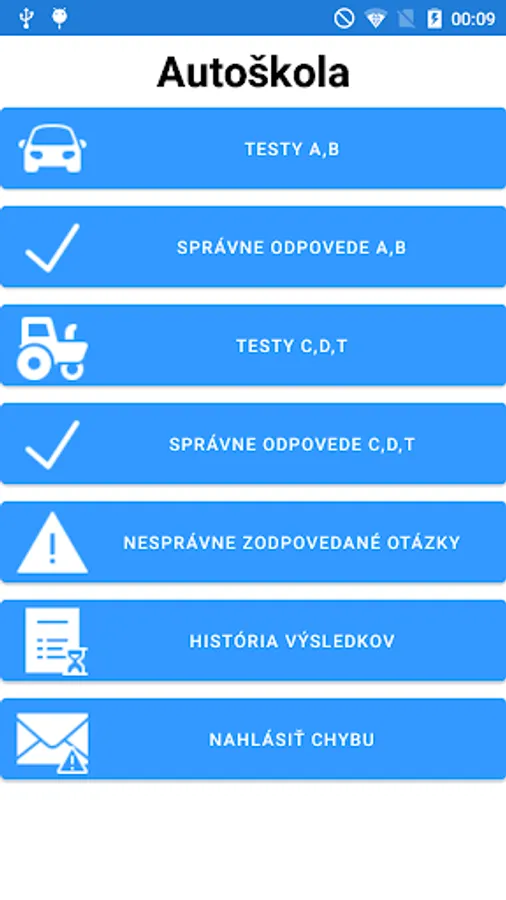 The application contains 35 tests for groups A, B and 25 tests for groups C, D, T. After the test, you can see the incorrect answers that are stored in the application, so you can return to them at any time. You also save the number of points from the tests, from which you can observe your improvement. You can report any errors directly in the application.