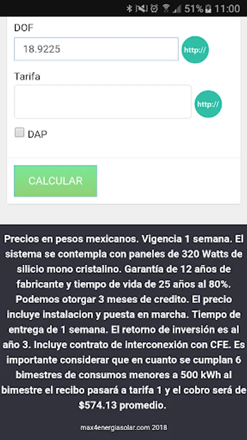 System to calculate and size the size of a solar power generation station based on CFE rates