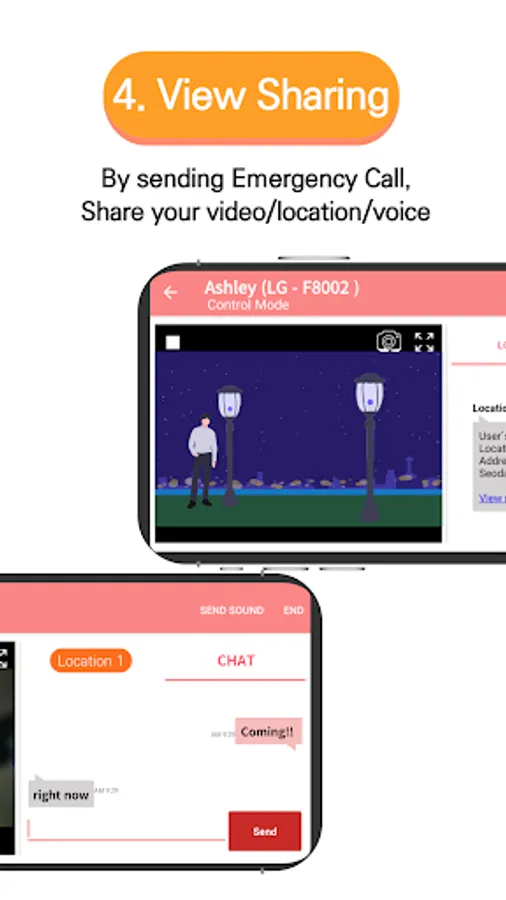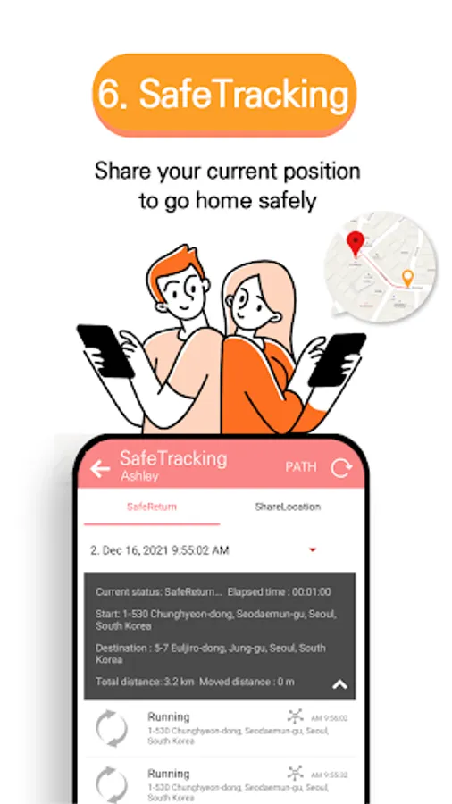 The friend who pressed "Connect" views video streaming around you, and real-time travel route to find out the situation in detail.