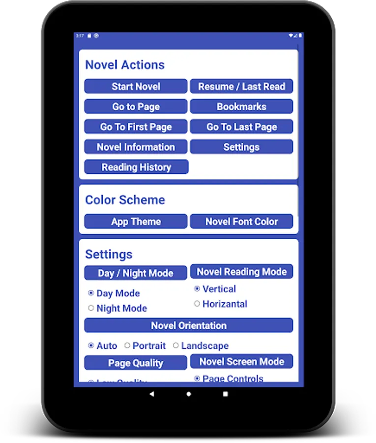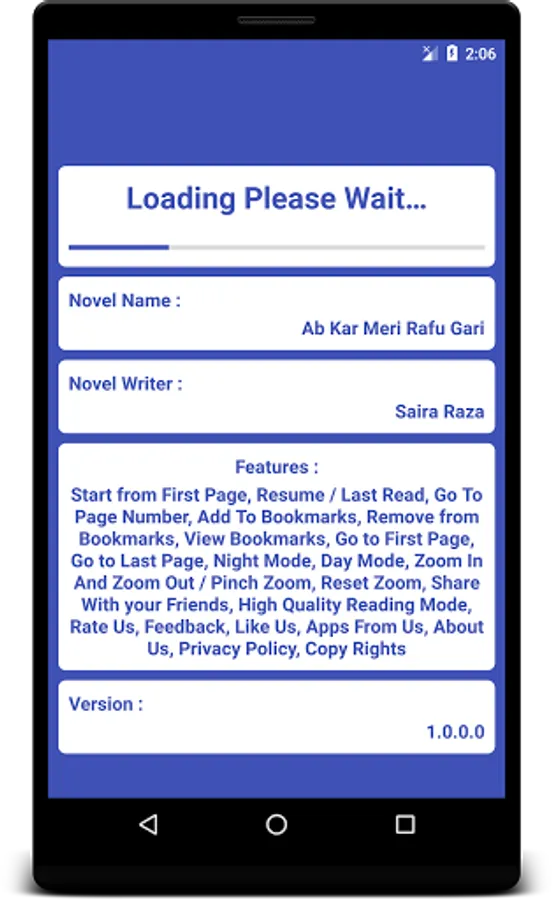 This application consists following features and functionalities. One of the most imortant feature is page navigation. We allow users to read from last position and provided "Go To Specific Page" feature to move to any page. An other important feaute is to provide user friendly screen transition. In the settings screen, user have many options to make its own setting for this novel which includes "High Quality Reading Mode", "Zooming Controls", "Day and Night Mode", Novel Reading mode (Portrait and Landscap). Apart from the above functionalities, this application provides Sharing functionality to friends.