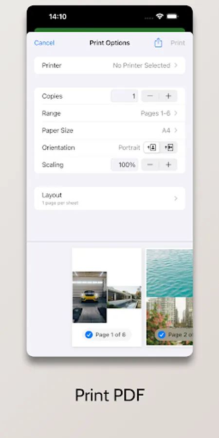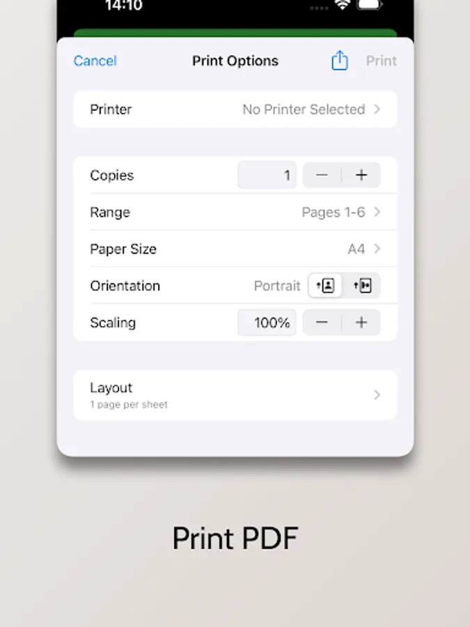 Save and organize your PDF files with Folders Structure in the app, and share or print them in A4 or Letter page size. You can also email, print, or send PDF files to Adobe Reader or another app, and directly upload them to iCloud Drive, Google Drive, Dropbox, or OneDrive.