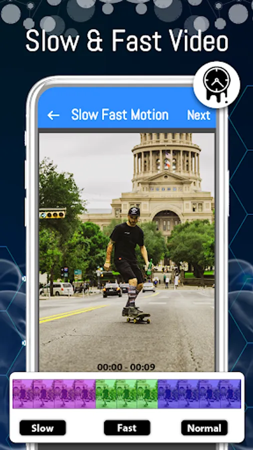 Slowmo or Slow motion and fast video maker is the free slow motion and fast motion video maker for professional use as well as for amateurs use. It is very easy to create quality slowmo video and fast motion video with and without music of video. Slowmo and speedy video maker set speed of videos in different ratios. Simply you can select video from your smart phone and make it slow motion or fast motion according to your desire.