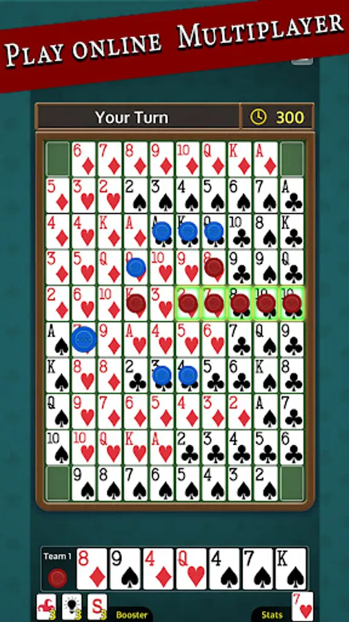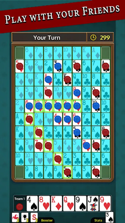 The player chooses a card from their hand, and places a chip on one of the corresponding spaces of the game board (Example: they choose Ace of Diamonds from their hand and place a chip on the Ace of Diamonds on the board). Jacks have special powers. Two-Eyed Jacks can represent any card and may be used to place a chip on any open space on the board. One-Eyed Jacks can remove an opponent's token from a space. Players may use the Two-Eyed Jacks to complete a row or block an opponent, and One-Eyed Jacks can remove an opponent's advantage. One-Eyed Jacks cannot be used to remove a marker chip that is already part of a completed sequence; once a sequence is achieved by a player or team, it stands.