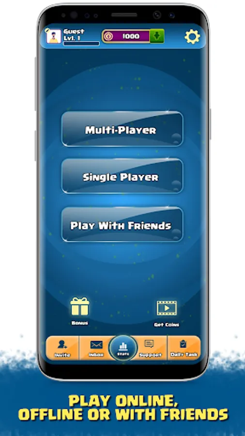 Awesome features are provided in skip card game such as Single Player with AI, Multiplayer and Play With Friends. You can add bots in play with friends mode in case you want to play with higher number of players with less real players. There are multiple earning options in skip card game like daily task where you cam complete tasks and earn coins, daily bonus where you can collect rewards for playing daily.