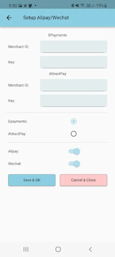 The app also allows payment to be taken via Alipay and WeChat Pay.