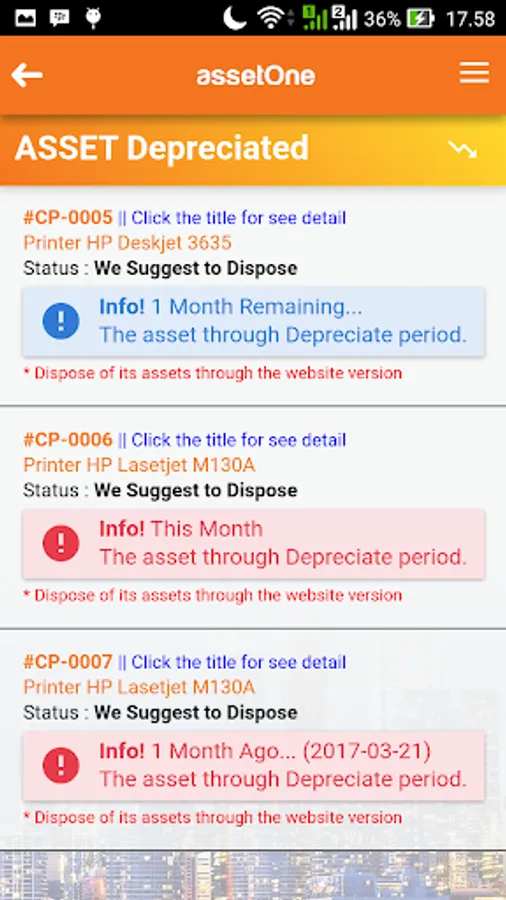 AssetsOne Fixed Assets & Tracing System delivers simplified software to track various types of assets by category, Full spectrum fixed asset management including Accurate Depreciation, Asset inventory reconciliation and confident compliance for fixed asset management, maintenance due dates, repair history, asset specifications, owners, locations, asset use, and operators. Asset purchase costs, asset lease agreements, and claim damages.