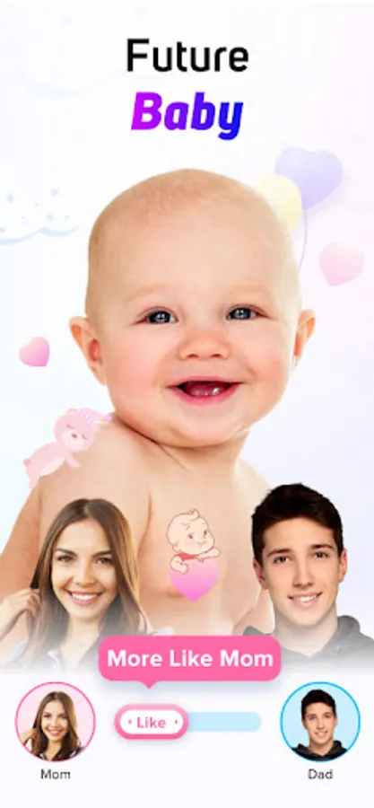 + Simple way to find out the face of your future baby with this awesome feature. Upload you and your partner's photos and make the baby prediction.
