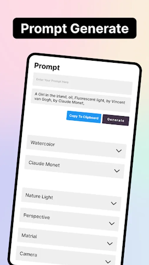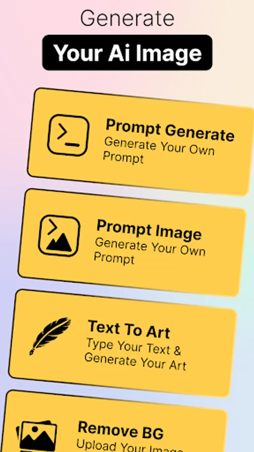 AI Art Generator application works on an advanced AI mechanism as loopsie to help you generate eye-catching and mesmerizing artwork through textual prompts.Imagine what you can create with AI-powered image generation. Enter your own prompt or utilize the premade prompts as loopsie to generate AI art with our app! Generating an image doesn’t have to be a problem anymore due to the arrival of our AI art generator as loopsie7. This app comes with a different set of modes to help you make inspiring images by simply adding instructions in the form of text. From allowing you to enter your own prompts to assisting you in the prompt generation and offering different types of prompts,Imagine what you can create with AI-powered image generation. this AI art generator has a lot to offer. Let’s uncover the amazing features of this AI art generator: - Prompt Generator Do you wish to enter prompts and generate your desired images, or do you find it difficult to write a prompt yourself? In either case, the AI art generator has got you covered. Its prompt generator feature provides you the option to enter your prompt. Imagine what you can create with AI-powered image generation. You can also generate a prompt by selecting your desired options, such as the medium, lightning, artist name, etc. As you proceed in this selection, the prompt will be generated automatically, through which you can create AI artwork in no time. - Prompt Images If you don’t want to wait for writing or generating prompts, you can utilize the prompt images feature on this app. The AI art generator comes with a plethora of AI images alongside the prompt used to generate to help you execute this task efficiently. This application allows you to share or download the AI artwork generated through prompts with a single click. - Text to Art The AI image generator also comes with a wide variety of prompts that you can pick to generate amazing AI artwork. The huge collection of prompts can surely match your image requirements and help you choose a prompt to generate AI artwork. - Image Variations This AI art generator extends its assistance from prompt-based image generation through its additional features. With its image variations feature, you can upload a picture and find its multiple variations that can give you additional attractive choices to post on social media or use for personal or professional reasons. - Background Remover Another great feature you’ll find in this ,AI image generator is the background remover. The ability of this app to remove unwanted backgrounds from your pictures can surely make you fond of using it. This application smartly detects the elements on your uploaded images and carefully removes the background without affecting any other object. You can make sure of finding top-notch results with this superb background remover. The AI world is advancing day after day. You shouldn’t stay back and start working on improving your journey of creating high-quality artwork through our AI art generator. You can also enjoy the options of removing the background and creating variations of existing images through AI. So, what are you waiting for? Download the AI image generator app now to start creating amazing images with prompts, Imagine what you can create with AI-powered image generation.!