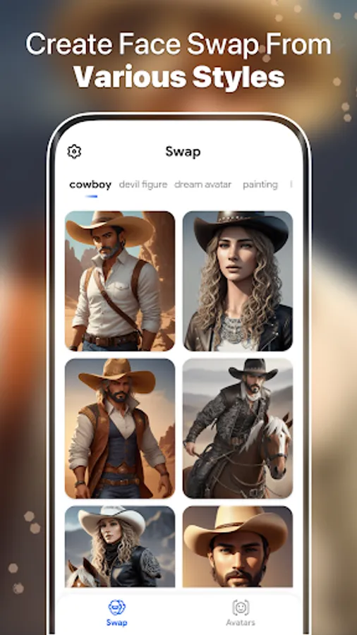 AI Avatar Generator: Art Photo app amazes you with AI face changer. With advanced AI face-swapping technology, the face on your photo can be replaced on another photo and has realistic facial expressions and movements that really look like you. Paste your face onto your favorite beauties, witches and more, it must be fun to trick your friends with ultra-realistic AI face swap pictures!