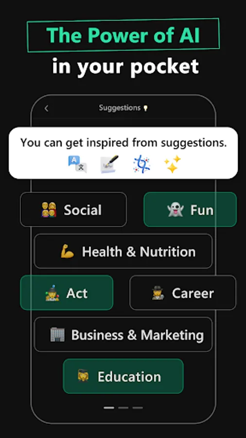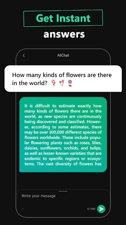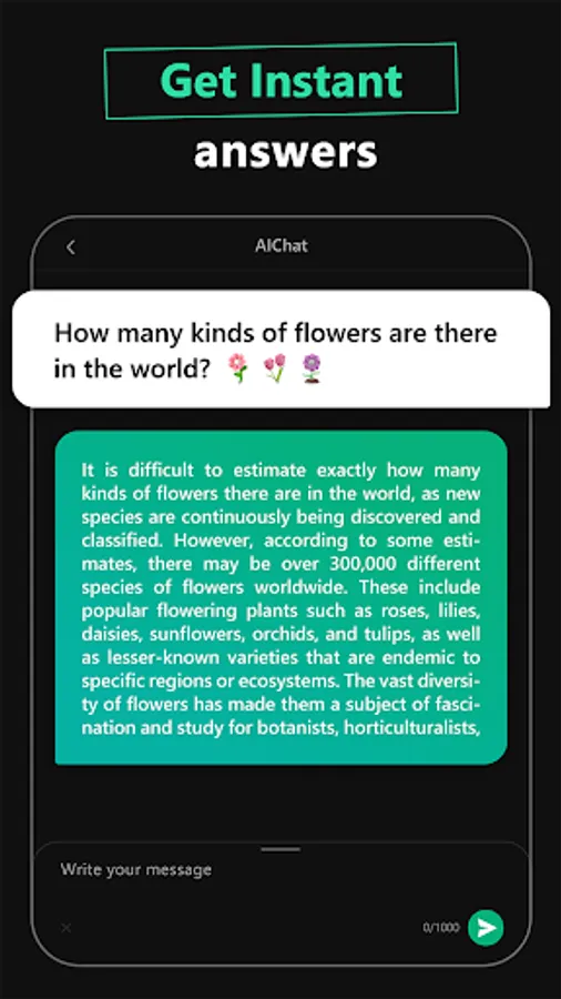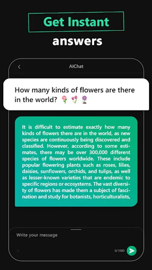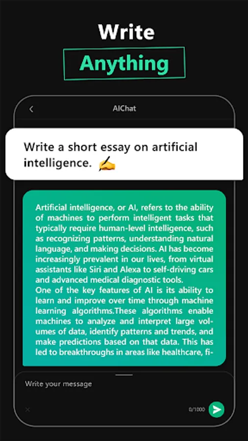 With AI Chat, you have access to personalized assistance for all types of writing projects, whether it is essays, compositions, social media posts, or poems. Basically, the app can assist with any task, such as crafting a unique and unforgettable pickup line or even creating an original song. That's right! This AI helper is not only smart but also creative. Let your imagination run free with it!