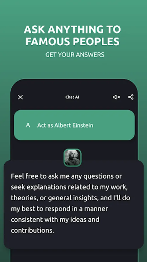 ASK It: ChatGPT and GPT-3.5 allows you to explore a wide range of AI Professionals, such as business assistant, career counselor, travel advisor, software developer, relationship coach, Language Expert, and more. The ASK AI – ChatGPT and GPT can suggest a topic or surprise you with a random one. You can ask GPT questions. You can also Chat with many historic Celebrities AI Models and ASK It what you always wanted to ASK AI Celebrity.
