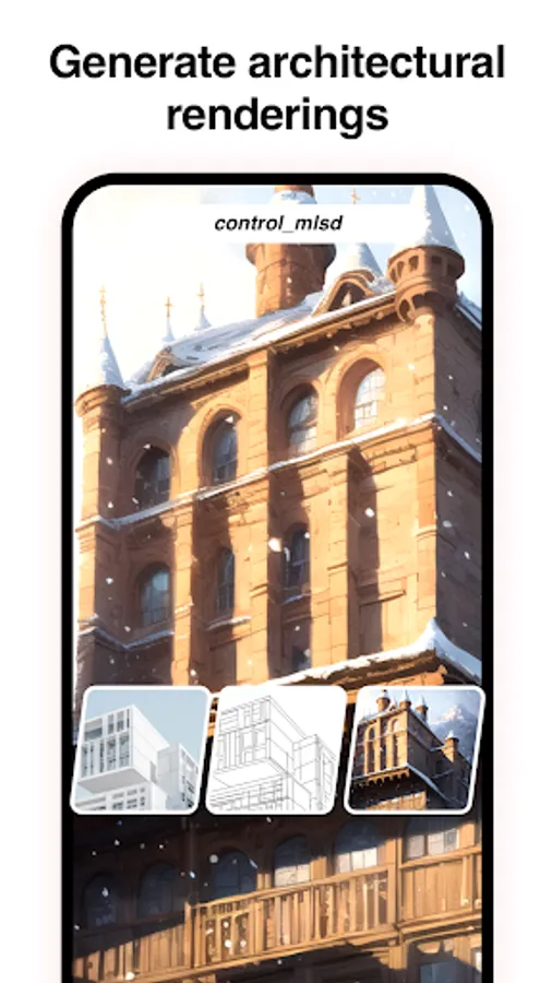 Our magic? The application has eight ControlNet AI models. All you have to do is upload a picture, fill in a prompt, and select a ControlNet AI model you want to use. We will use ControlNet's AI technology to generate creative and beautiful images for you. With ControlNet, we can not only generate images as beautiful as those generated by Midjourney, but also generate architectural renderings, pose drawings, or color your manuscript as required. Make it really beautiful. At the same time, we also provide the function of saving and downloading pictures, you can save your favorite beautiful pictures to the project page, you can also download to the local album. Use our ControlNet AI model to generate pictures. Through ControlNet AI model, accurate control AI to generate pictures is no longer a dream, and to edit, design, you can meet your design needs, which is like having a complete creation and design studio in your pocket!