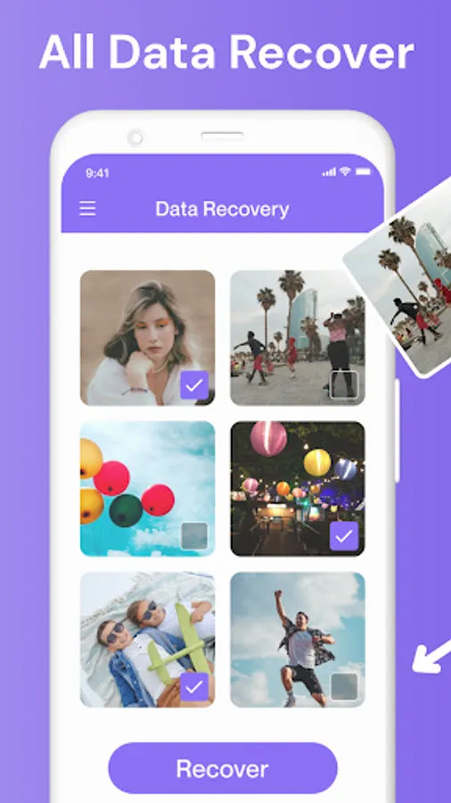 Have you ever accidentally deleted important files or faced data loss situations? Don't worry; our Data Recovery app is here to help you recover your precious memories and essential files. Our comprehensive tool is designed to handle Photo Recovery, Video Recovery, Audio Recovery, and Document Recovery, whether they were stored on your device's internal memory or an external SD card. With Data Recovery, you can conveniently and effectively restore deleted files, including recently deleted Photos, Videos, and Audio.