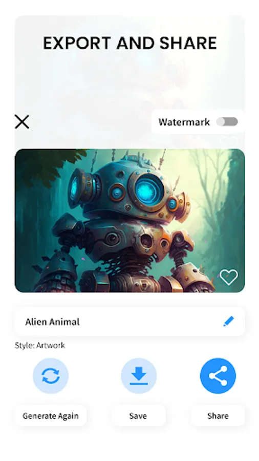 If you have created something you enjoy using a powerful AI art generator, you can share your creations directly through the app with other sharing platforms like WhatsApp, Facebook, Instagram, and more!