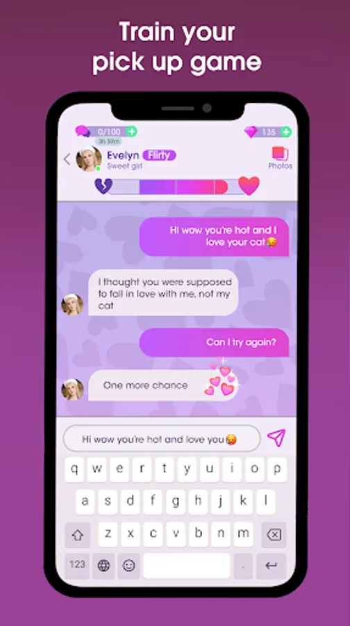 Welcome to the exciting world of virtual dating! With this brand new AI powered mobile dating game, you will get to engage with AI virtual characters and experience the thrill of a real conversation. The game will help you to train your communication skills to easily and effortlessly communicate in real dating! Test your best lines. 😉