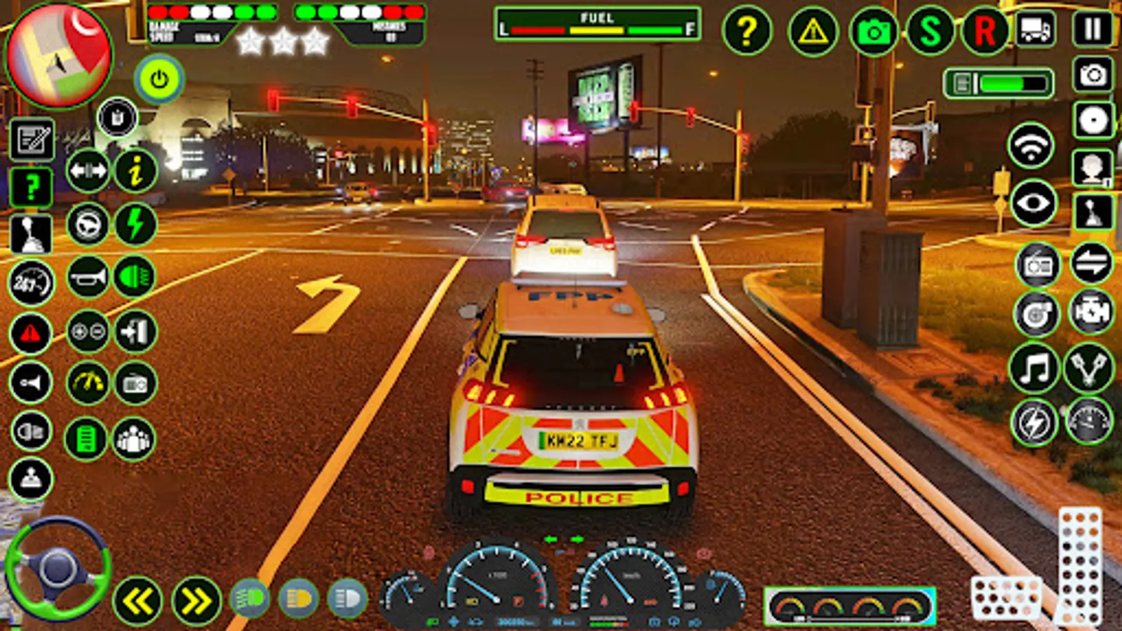 Start the police Car Games 2023 a real cop car driving simulator 3d, first pick the seat belt of car chase police car. drive the cop car game carefully in police car driving game. Follow the traffic rules and do not hitting other cop cars, or police car chase. Because it could be dangerous for your car to drive any accidents can crash your car and fail your levels of car driving -police car escape game 2023.