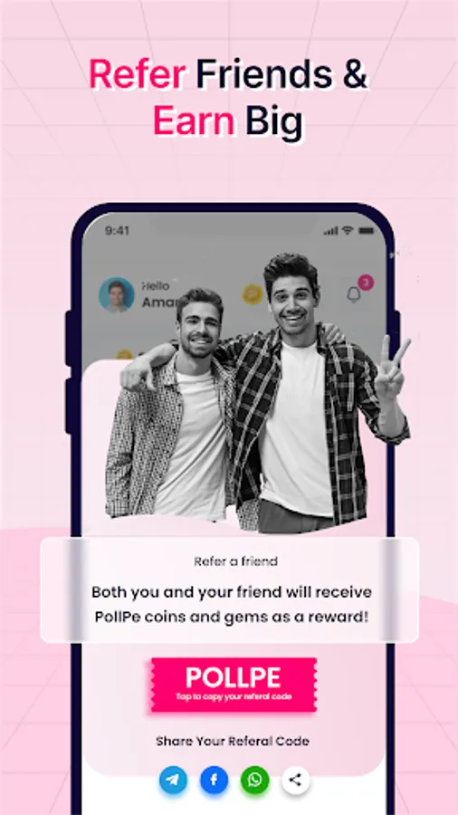 Everything's better with your group of friends. That's why we offer referral coins to you when you invite your buddies to the PollPe app. Start Inviting friends to PollPe and earn even more rewards together!