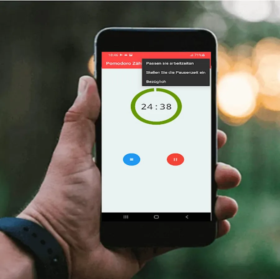 * Fähigkeit, eine Pause einzulegen, wenn der Pomodoro vorbei ist.