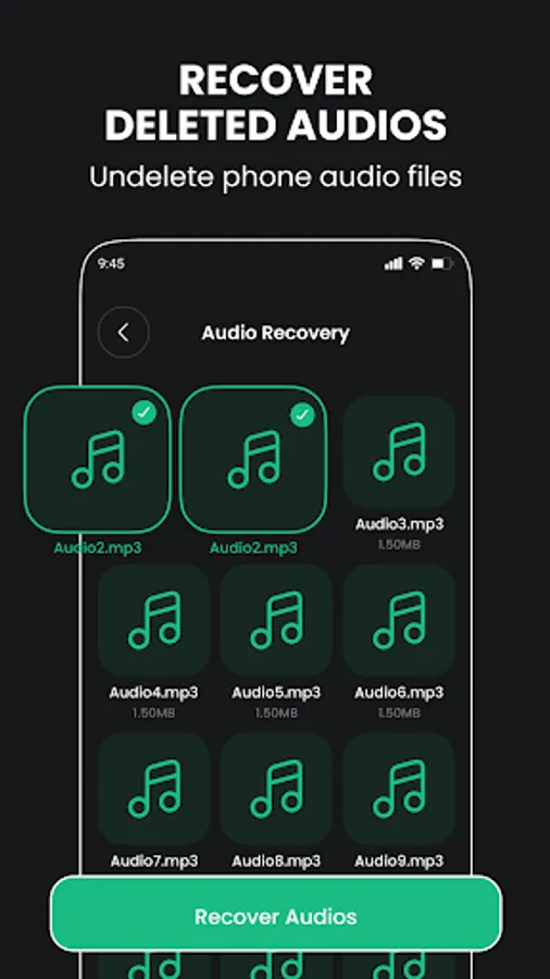 Tailor your recovery process to your needs. Choose to recover specific files or restore all deleted data, including photos, videos, audios, contacts, and now documents.