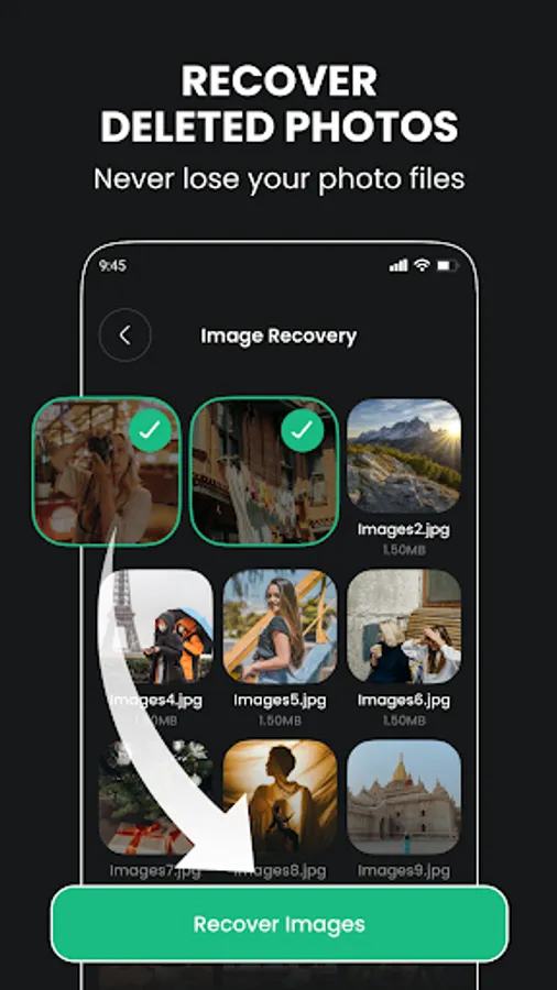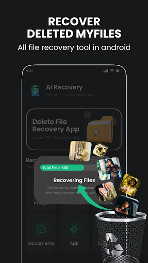 Ai Recovery Pro performs quick scans to find most deleted files. For harder-to-recover data, our app can initiate a deep scan to uncover even the most elusive files.