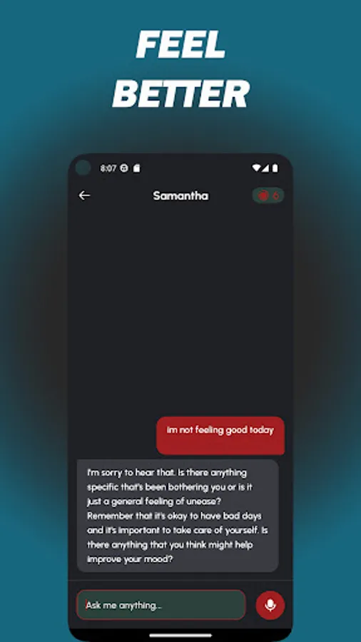 🔬 Trust the Science: Samantha isn't just another app. Rooted in Cognitive Behavioral Therapy (CBT), it's a scientifically-backed method to calm anxiety and enhance your mood. Remember that groundbreaking Stanford University study? Users saw a significant drop in depression and anxiety symptoms with Samantha.