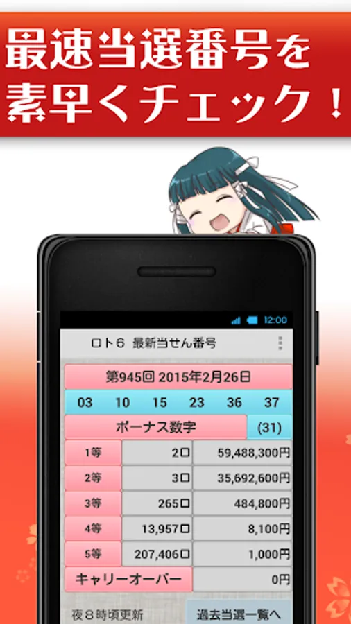 The app will be updated almost at the same time as the winning results are updated on the Mizuho Bank website.