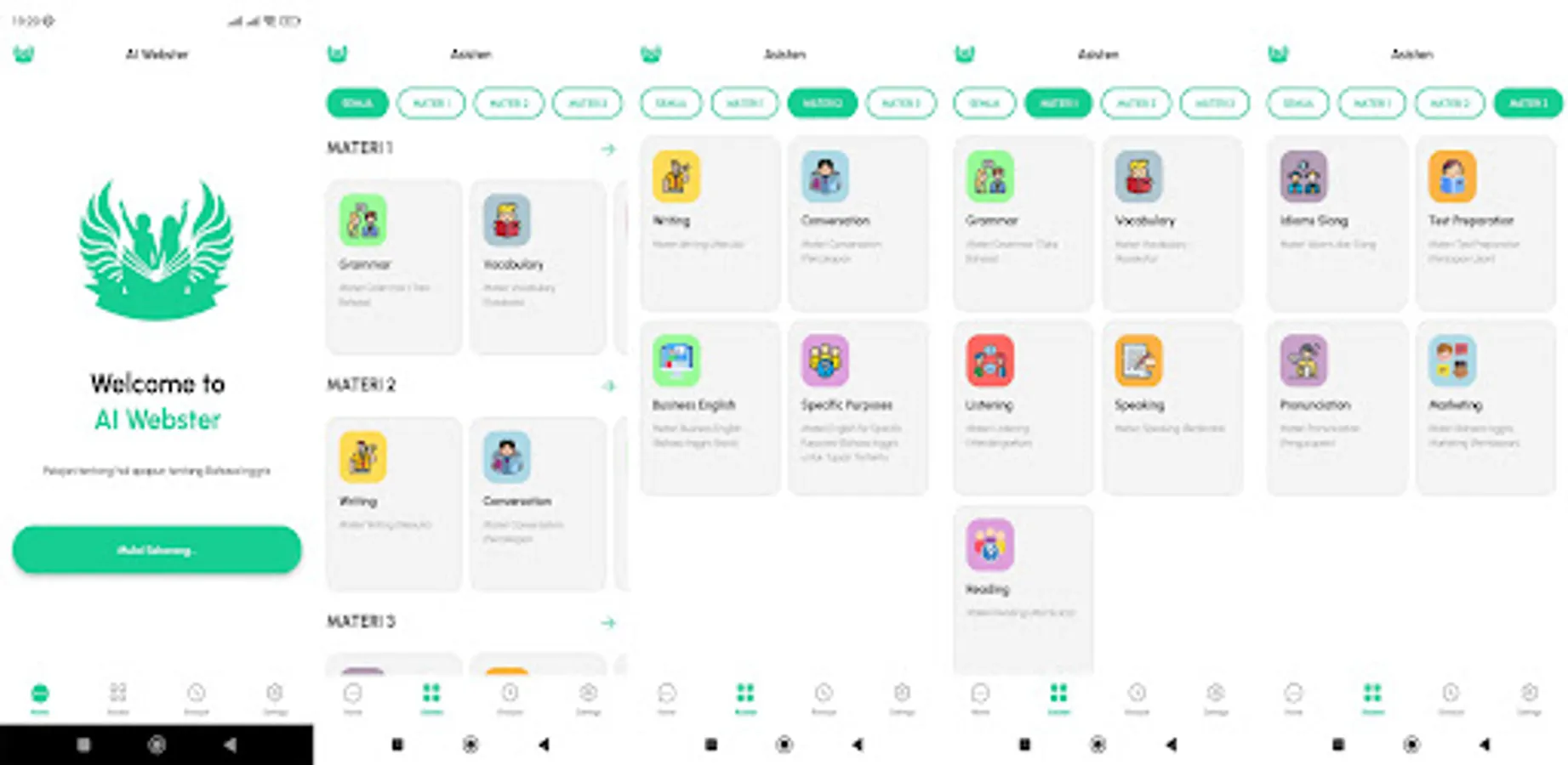 4. Speaking Materials: Materials that help improve speaking skills in English, including dialogues, pronunciation exercises, and practical speaking situations.