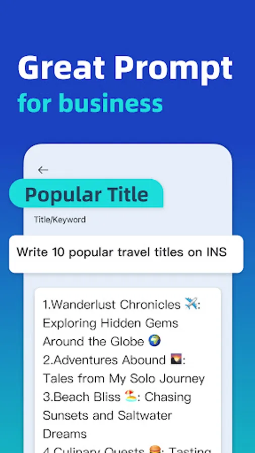 - Business Writing: Trending headlines, news reports, product descriptions, advertising copy, social media content, etc.