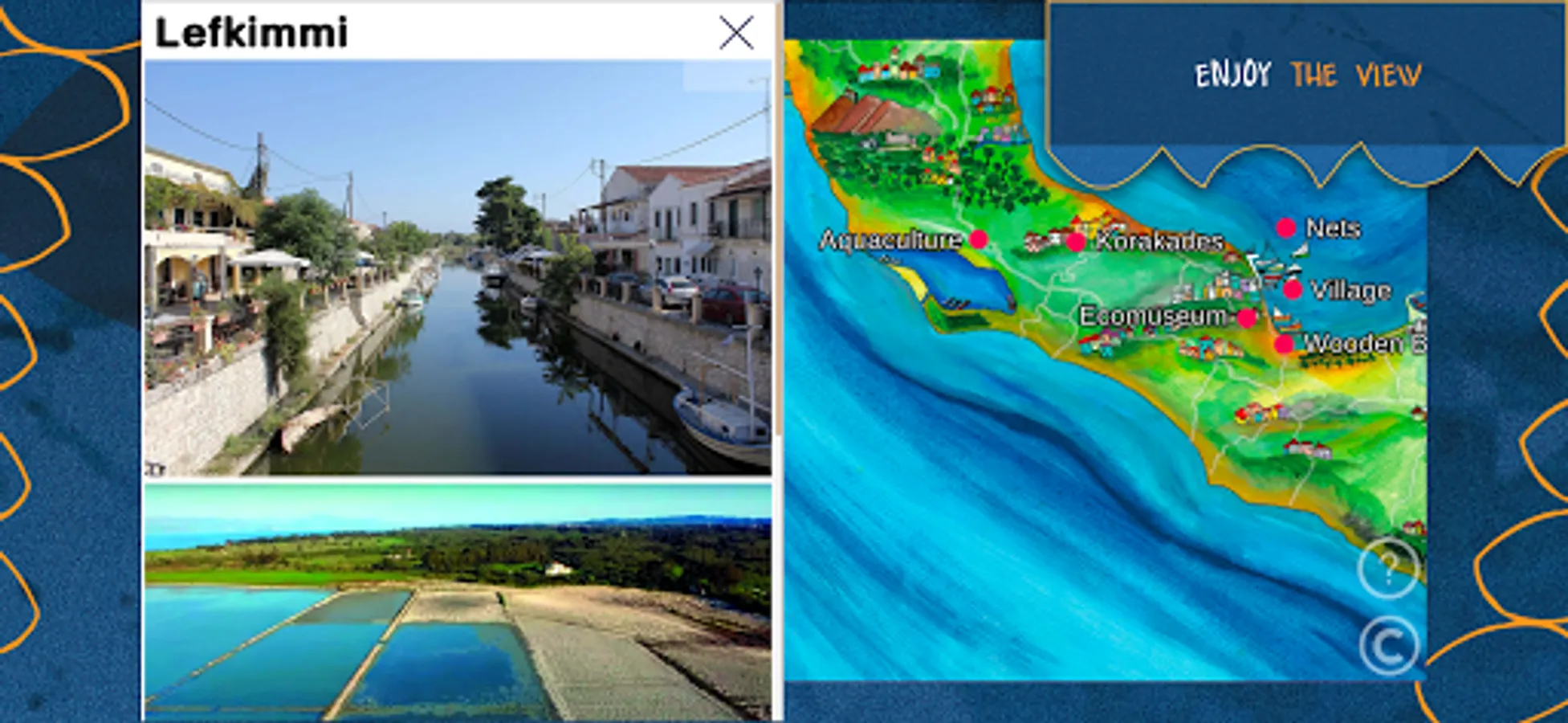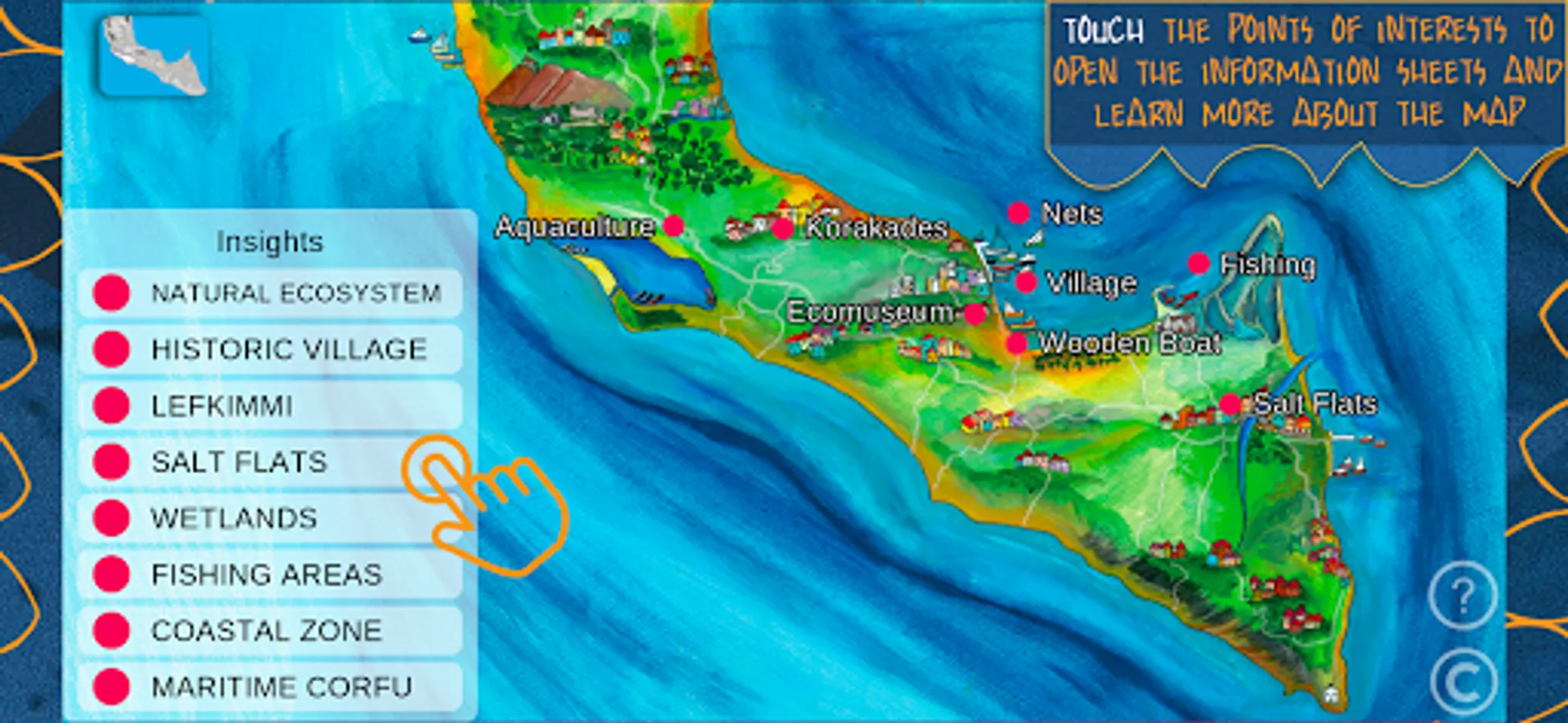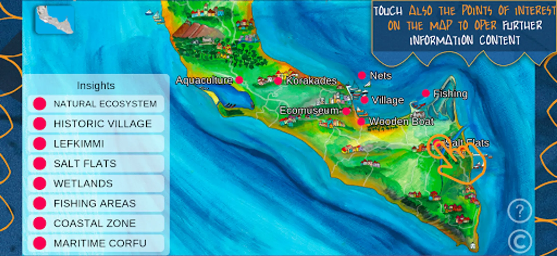 - You can explore two different kind of maps of South Corfu. One focused on the history of the island; One focused on the experience you can live there: in term of cultural routes created by the local University, to discover and live the most interesting places of Corfu.