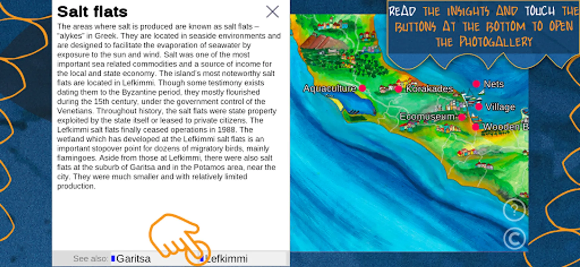 - You can tap on insight points and to read the content projected and created by archeologist and researcher in two english and Greek (to reach an audience made of tourist, passionate people, insiders and residents).