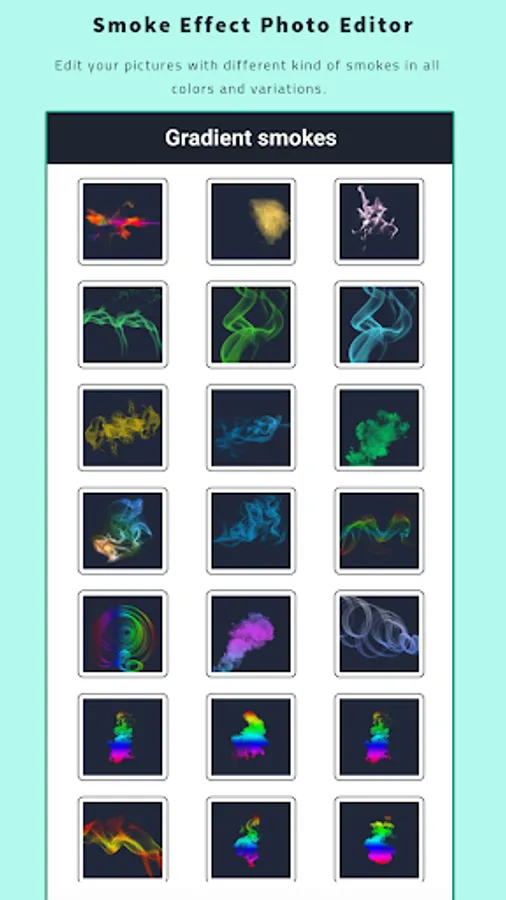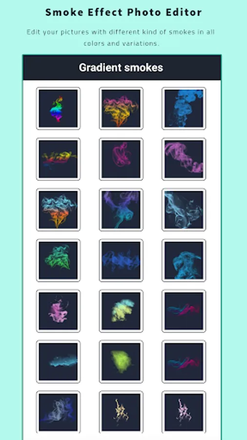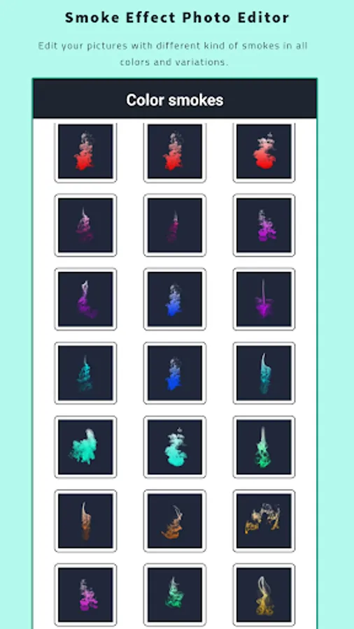 Smoke Effect Photo Maker is a Photo Editor which lets you edit your pictures with different kind of smokes in all colors and variations.