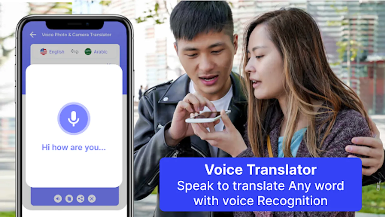 Real time voice translation: Speak and translate voice into more than 100 languages. AI Voice translator translate one language voice into another language.