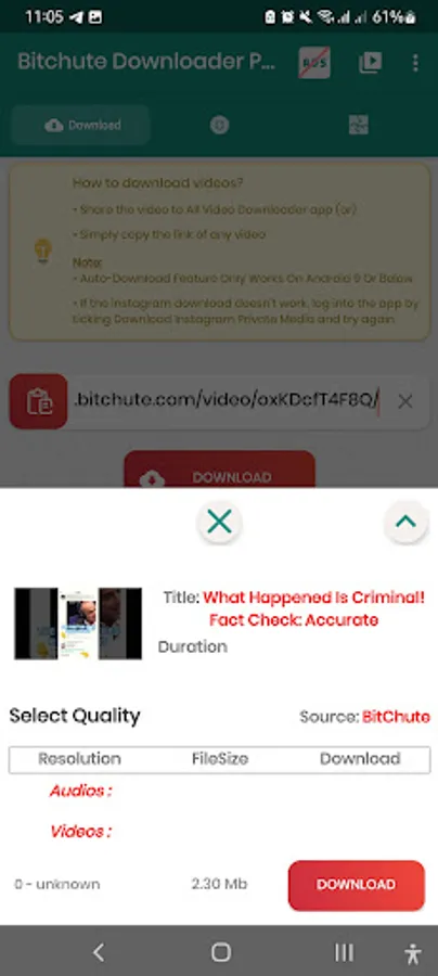 With these incredible features and more, Bitchute All Video Downloader is the perfect app for users looking to enjoy their favorite videos anytime, anywhere.