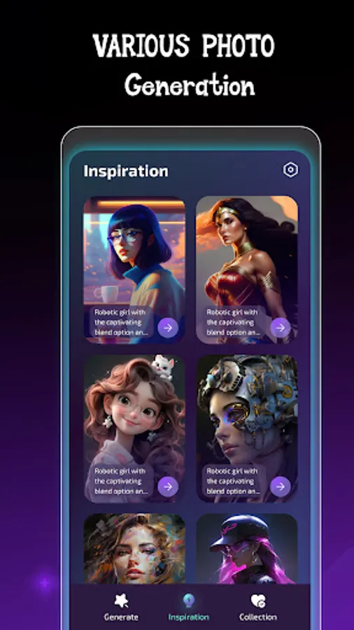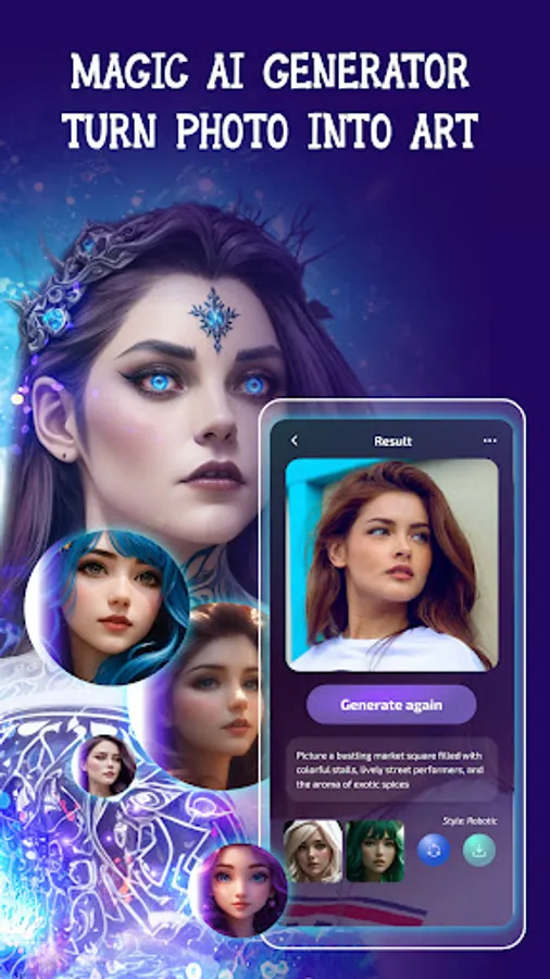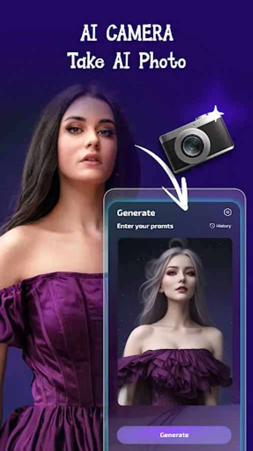 Capture the future of photography with the AICamera Generator App's. Using advanced AI algorithms, the AI Camera Generator analyzes your surroundings, identifies the key elements, your selfie photo and generates them following your chosen styles . Whether you're a seasoned photographer or an aspiring enthusiast, let the AI Camera Generator App redefine your photography experience, capturing moments with a touch of AI magic.