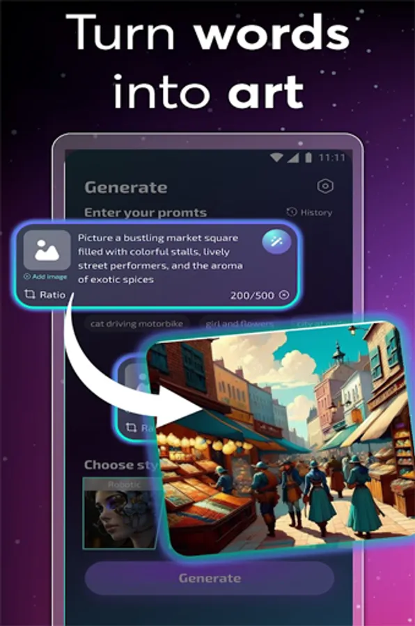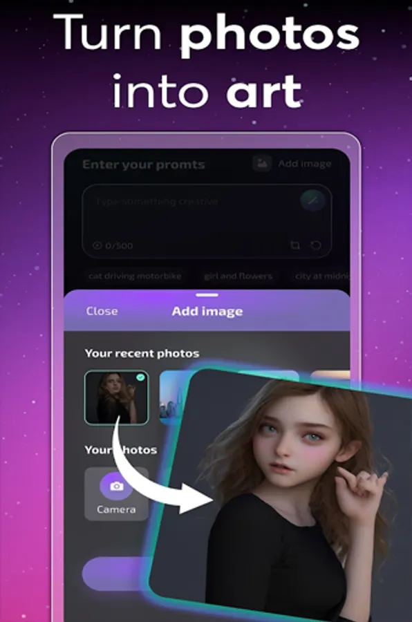 Embrace the future of photo editing! Download AI Photo Generator now and watch as your images evolve into astonishing works of art, all thanks to the brilliance of AI.