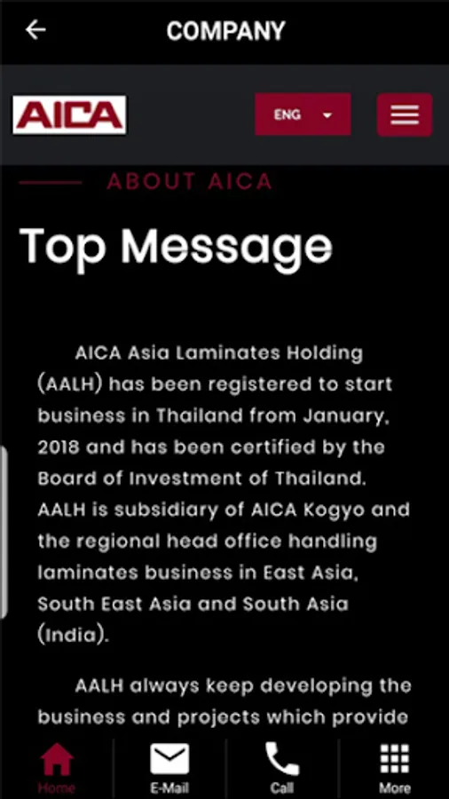 AICA Asia Laminates Holding (AALH) has been registered to start business in Thailand from January, 2018 and has been certified by the Board of Investment of Thailand. AALH is subsidiary of AICA Kogyo and the regional head office handling laminates business in East Asia, South East Asia and South Asia (India).