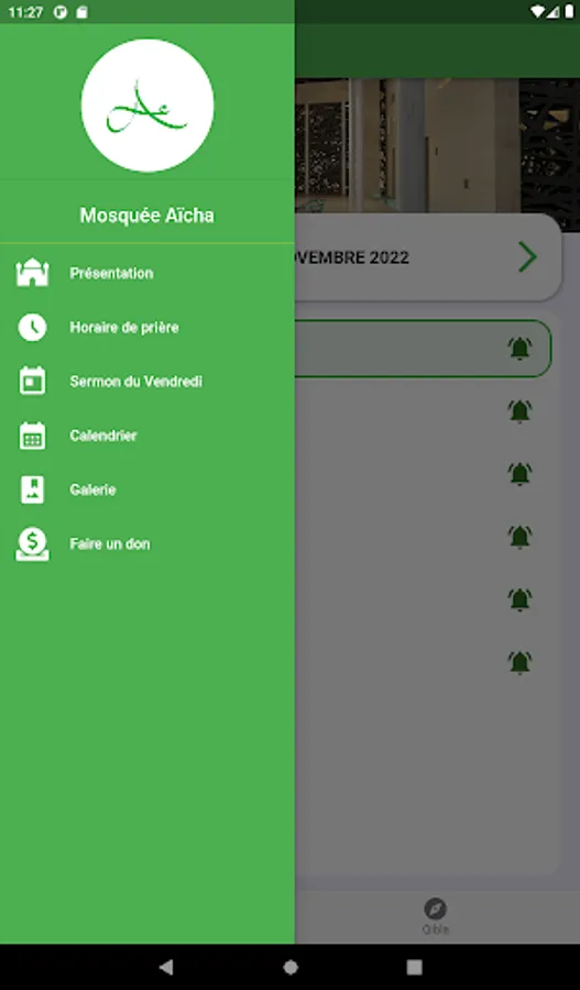 Mobile application for the Aicha Mosque, it allows you to have information and consult prayer times.
