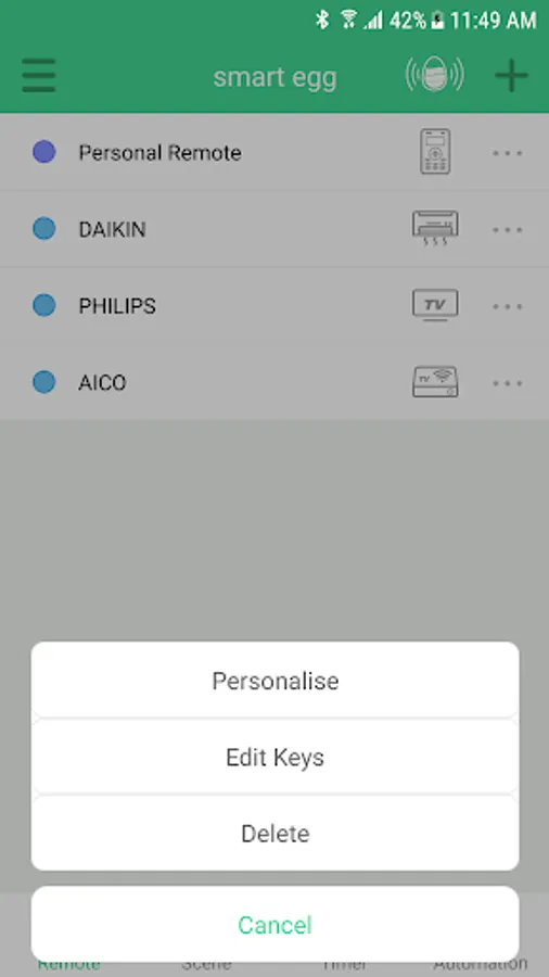 Smart Egg has a patented wheel shaped control interface on smart phones, that is the closest user experience to using a typical remote control at home instead of learning complex workflow as many current smart home remote require.
