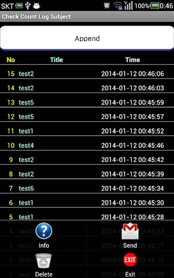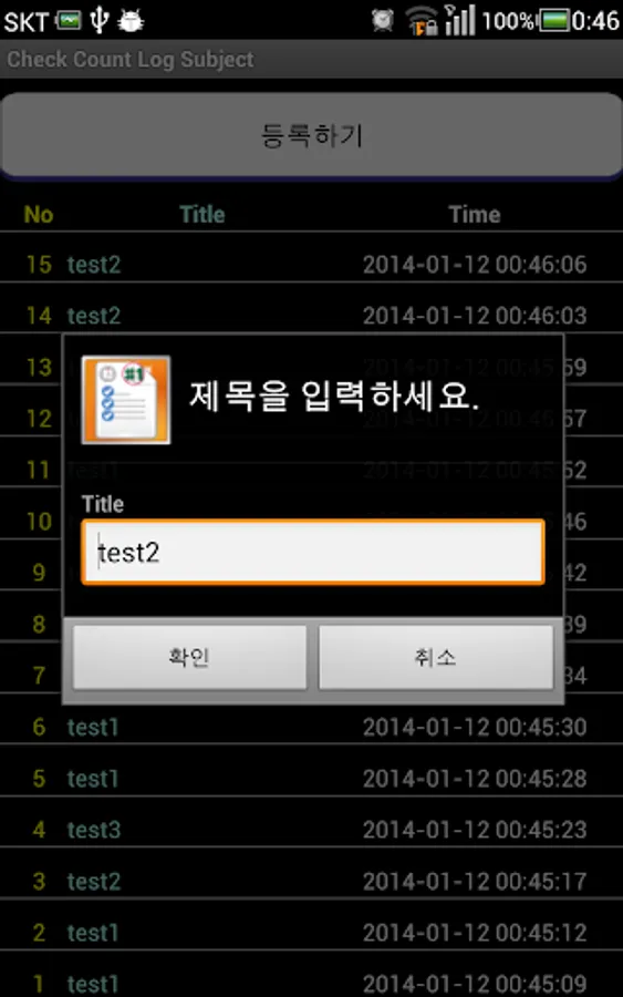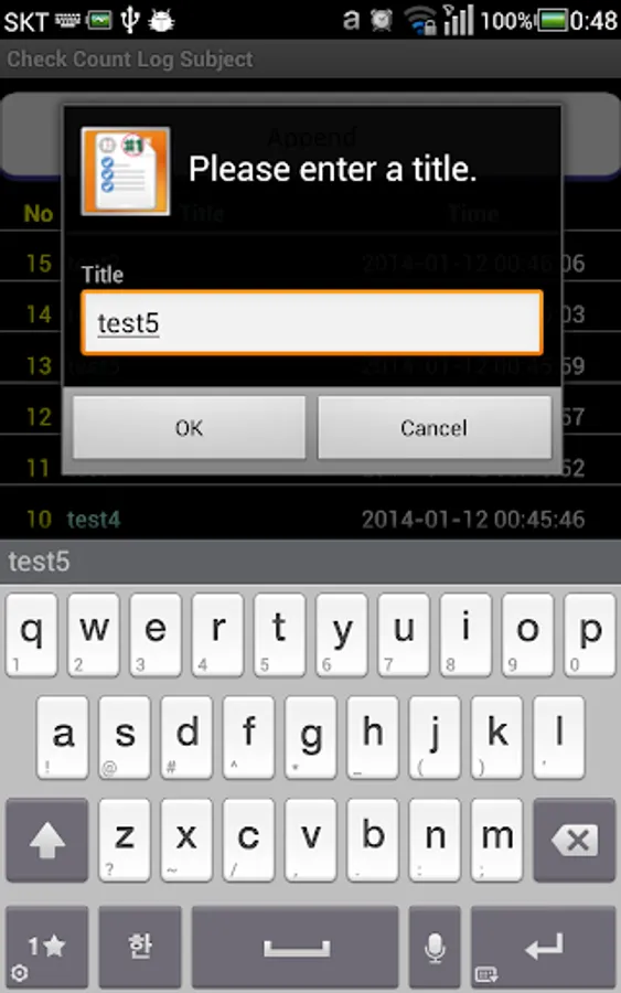 Counter log (1 item, User Input)