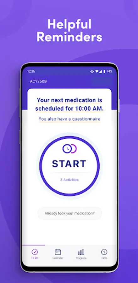 Patient Connect provides helpful reminders for essential activities such as taking medication, answering questionnaires and upcoming visits. When it is time to take a dose, the app includes instructive guidance to ensure medication is taken as directed.